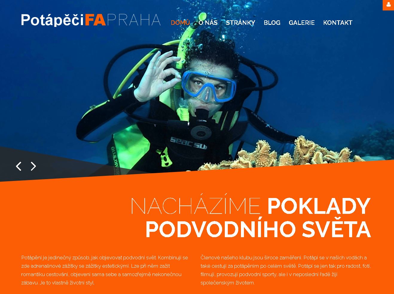 Vše neuvěřitelně rychle běží a vyvíjí se. I náš virtuální svět, bez kterého se již nelze obejít, doznal významných změn. Pokrok nezastavíš, a tak dle hesla: “Kdo chvíli stál, stojí opodál“, jsem přistoupil k rekonstrukci našich webových stránek. Proč to dělám a co nám to přinese? Kromě modernějšího vzhledu a možnosti pohodlně prohlížet stránky na všech zařízeních (říká se tomu Responzivní web), budou nové stránky přizpůsobeny pro spolupráci se sociálními sítěmi. Stránky jsou naprogramovány jako redakční systém, takže budou více otevřeny pro jejich návštěvníky. Doufám, že se zde podaří rozběhnout diskuzní fóra a že i Vaše příspěvky a fotografie se budou prezentovat na novém webu. Možná i komentáře Rádia Cheyna zde najdou své místo. Možností je bezpočet. Nyní jen záleží na mé šikovnosti a píli, jak se vše rychle povede přivést k životu. Grafika a základní struktura je již hotova. Zbývá převést původní data a nastavit komunikační kanály. Abych Vás alespoň trochu natěšil, připojuji malou ochutnávku ve formě obrázku úvodní obrazovky nového potápěčského webu.